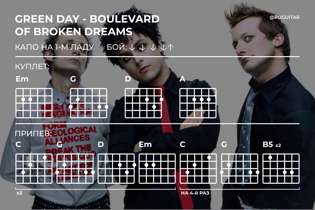 Boulevard of Broken Dreams – Аккорды и бой на гитаре – Green Day