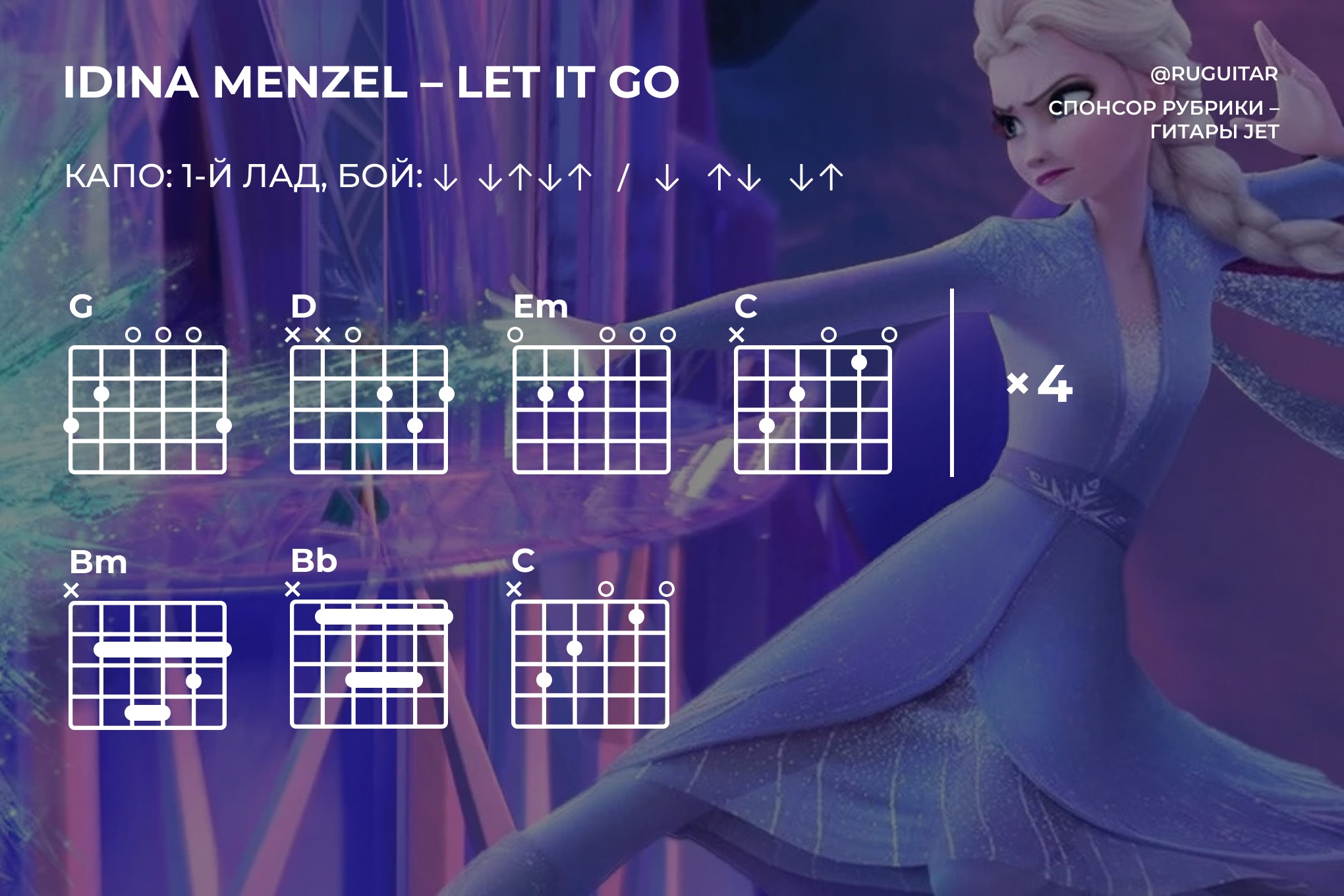 Let It Go (Frozen) – Аккорды и бой на гитаре – Idina Menzel