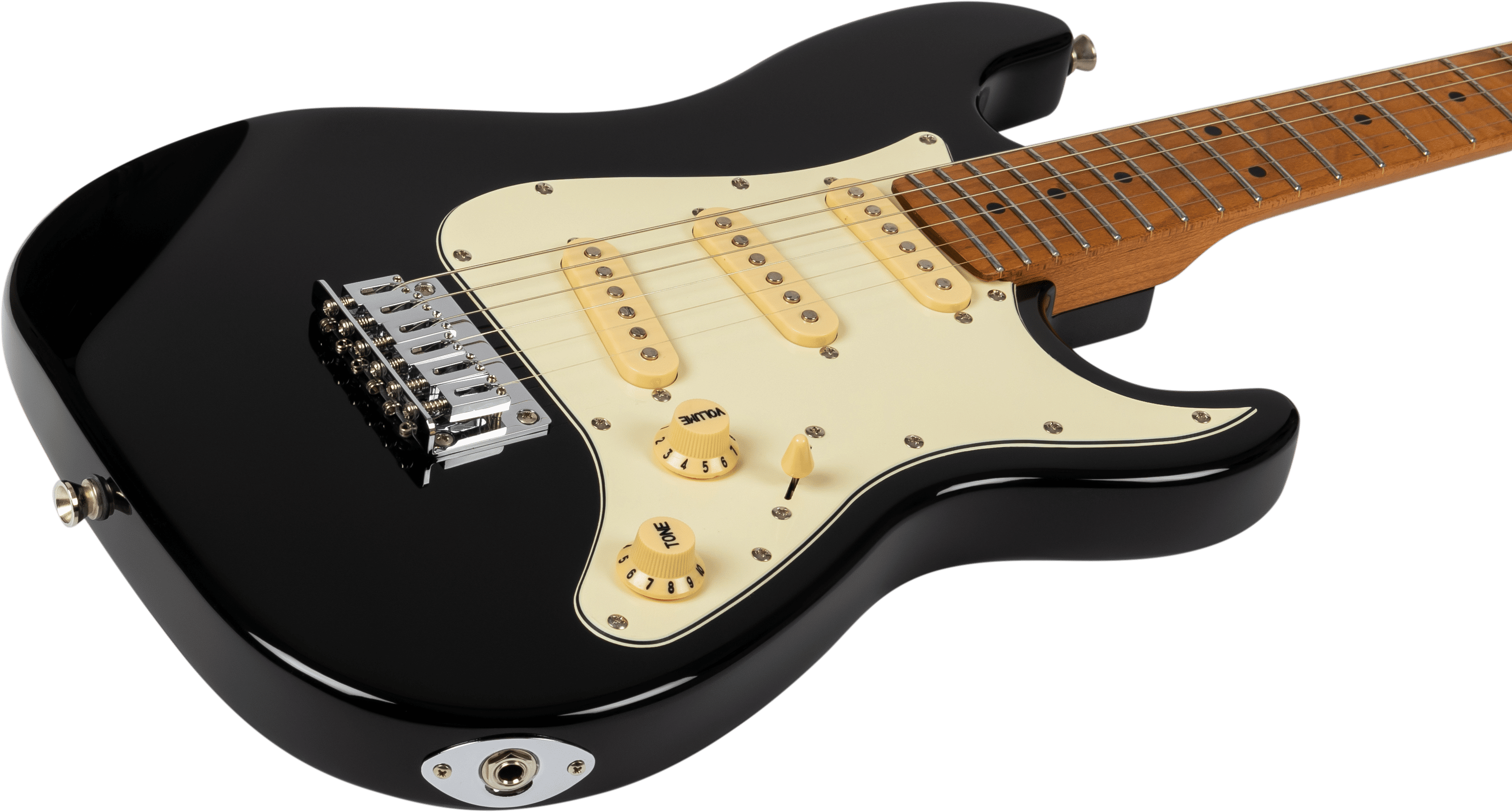- Звукосниматели: HH (два хамбакера для жирного дисторшна в роке/метале), HSS (универсальная конфигурация для максимально вариативного звучания: от чистого до легкого перегруза и хайгейна).